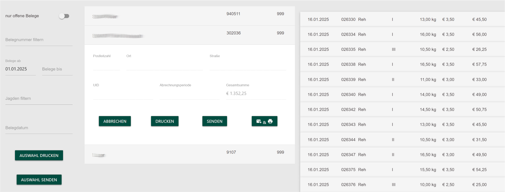 - pdf- und Excel-Download bzw. eMail-Versand.